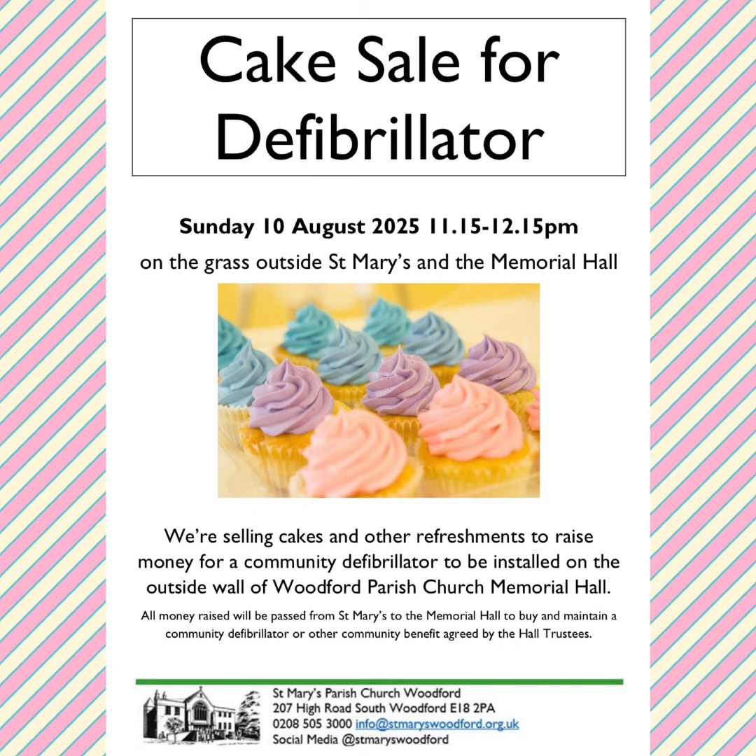 Repair Cafe (Instagram Post) (1) lego Original size is 1080 × 1080 pixels poster advertising a cake sale to raise funds for a defibrillator